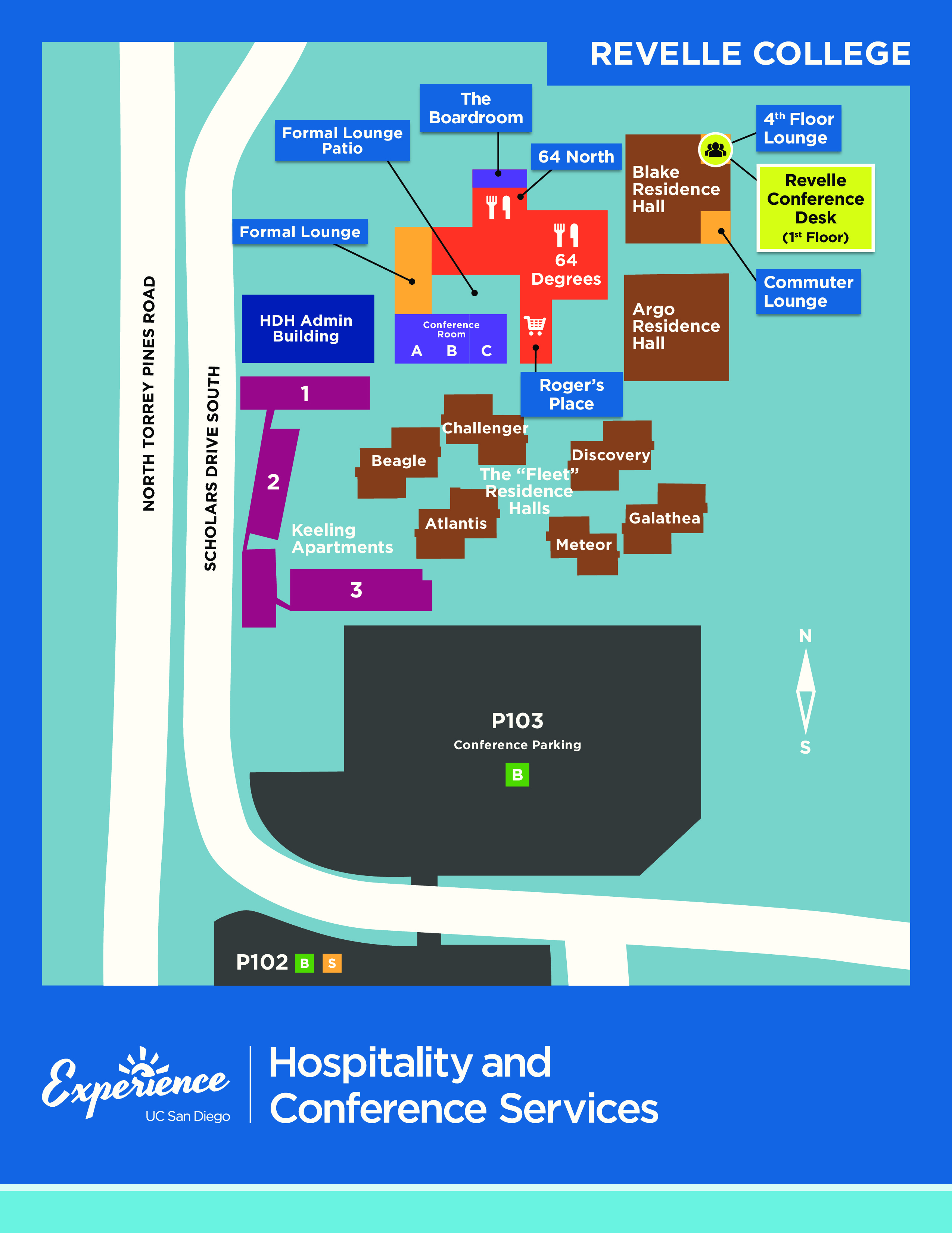 If you are driving to UCSD please use "Lot P103" in your navigation app. We have reserved a few parking spaces in the Lot P103 with a "FSCI" sign for you to park temporarily in order to pick up your parking permit. For those who use Uber/Taxi – Please ask your driver to use "Revelle College" in his navigation app.